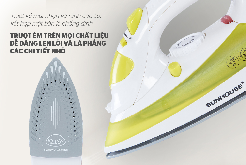 Ngoài ra, mũi bàn là nhọn giúp len lỏi tốt vào các vùng ủi hẹp như cổ áo, hai hàng cúc, nách áo…