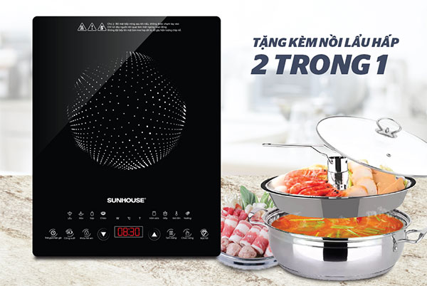 - Bếp điện từ cảm ứng Sunhouse Mama SHD6808 thiết kế kiểu dáng hiện đại nhỏ gọn không chiếm nhiều diện tích của gia đình bạn.