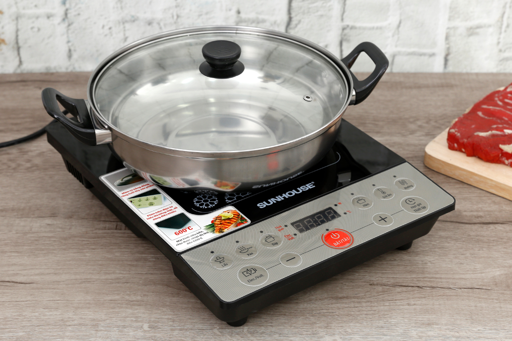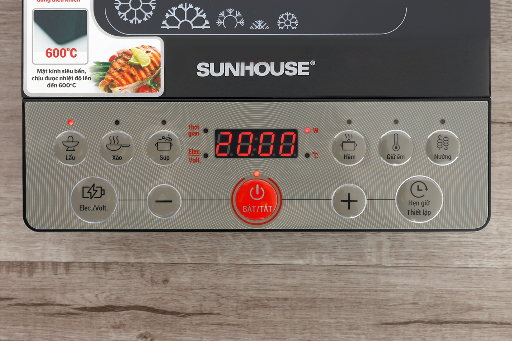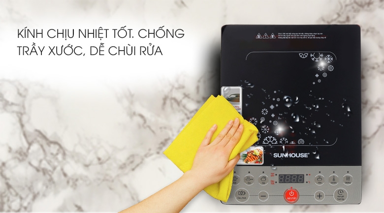 Bếp điện Sunhouse sang trọng, chắc chắn, mặt bếp làm từ kính chịu nhiệt