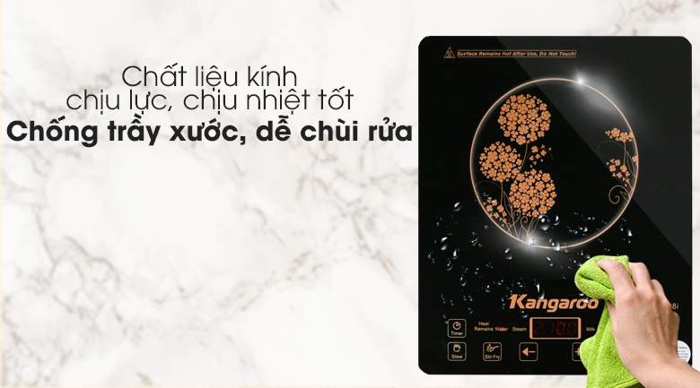 Bếp từ Kangaroo màu đen sang trọng, hoa văn vàng đồng nổi bật, bắt mắt, thiết kế mỏng gọn đẹp mắt trong không gian sử dụng
