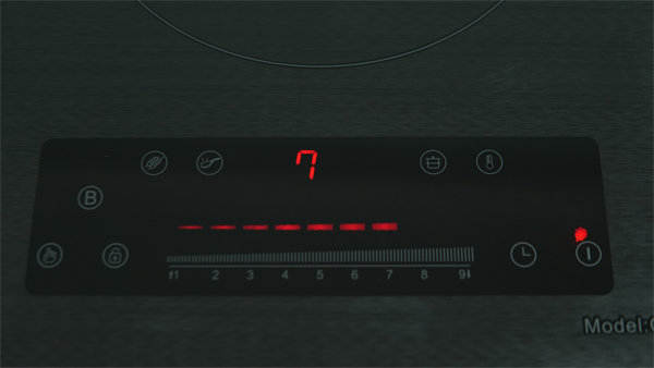 - Chọn công suất nấu từ 1 đến 9: Bạn có thể điều chỉnh công suất bằng cách nhấn vào từng mức công suất. Trong đó, số 1 là mức công suất thấp nhấp, số 9 là mức công suất cao nhất. Hoặc vuốt nhẹ tay trên dải nhiệt để điều chỉnh. Vuốt từ trái sang phải để tăng công suất, và vuốt từ phải sang trái để giảm công suất.