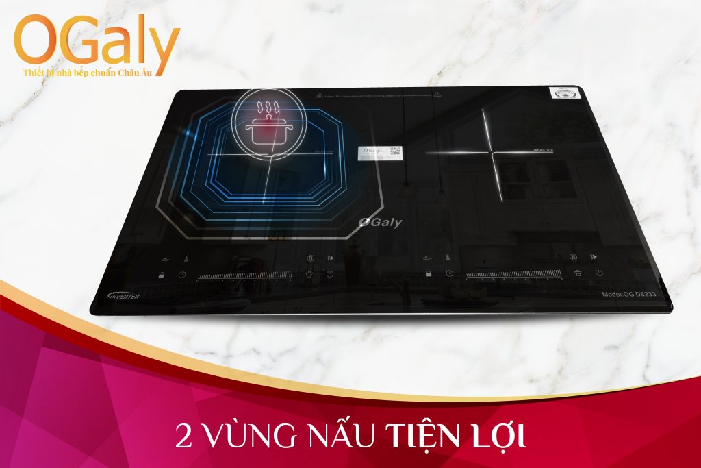 OG D8233 có 2 vùng nấu rộng rãi giúp bạn chế biến được nhiều món ăn cùng lúc. Bạn có thể vừa nấu canh, vừa chiên xào thực phẩm một cách thật thoải mái.