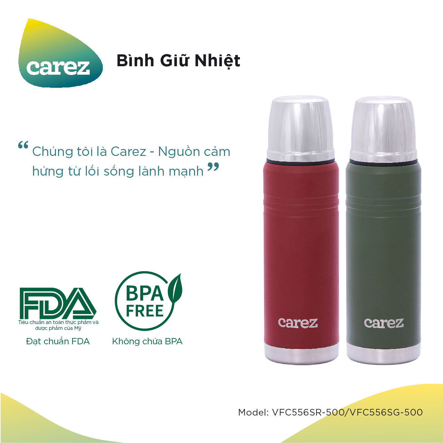 - Bình giữ nhiệt Carez model VFC556SR-500 với màu đỏ Cherry nổi bật, thiết kế thân bình mang đến sự chắc chắn khi sử dụng. Nước sơn nhám mang lại cảm giác sang trọng, tự tin cùng bạn đi khắp mọi nơi