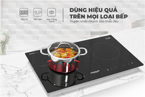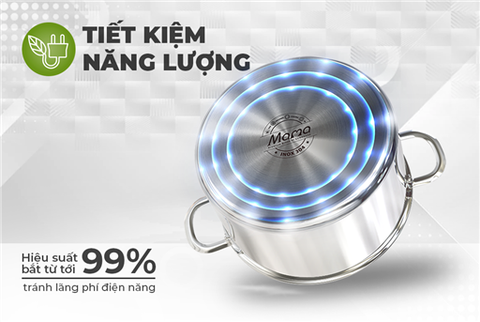 Bộ nồi inox đa lớp Sunhouse Mama SHG701 được tích hợp đáy từ giúp sử dụng dễ dàng và linh hoạt trên các loại bếp như bếp gas, bếp từ, bếp hồng ngoại,… Đặc biệt lớp ngoài cùng là inox 430 có khả năng bắt từ cao nhất trong các loại inox hiện nay, hiệu suất bắt từ của bộ nồi lên tới 99% giúp rút ngắn thời gian gia nhiệt, tiết kiệm thời gian đun nấu, tiết kiệm năng lượng đun nóng.