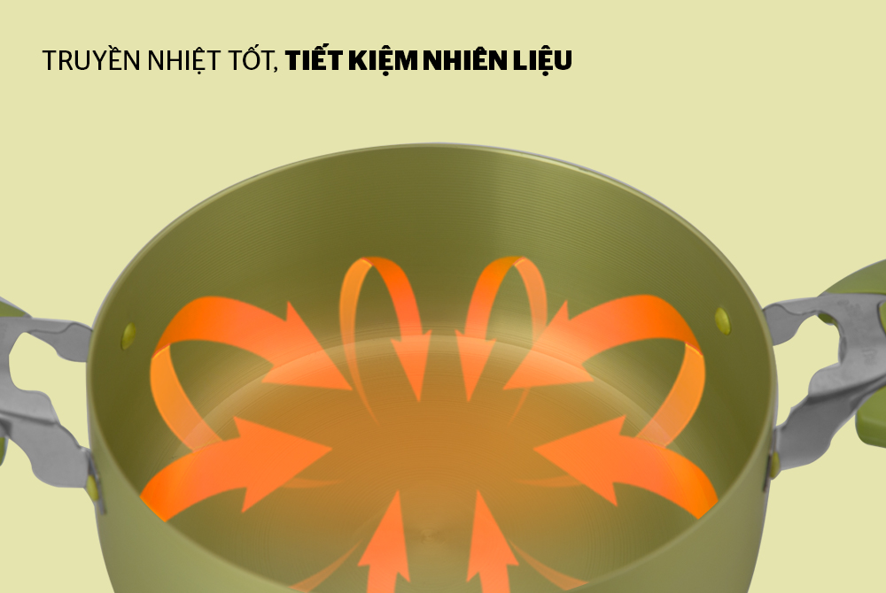 - Nấu ăn nhanh hơn, tiết kiệm nhiên liệu: Đáy nồi phẳng rộng, hấp thụ nhiệt tốt, truyền nhiệt đều, nấu chín thức ăn nhanh hơn các loại nồi thông thường.