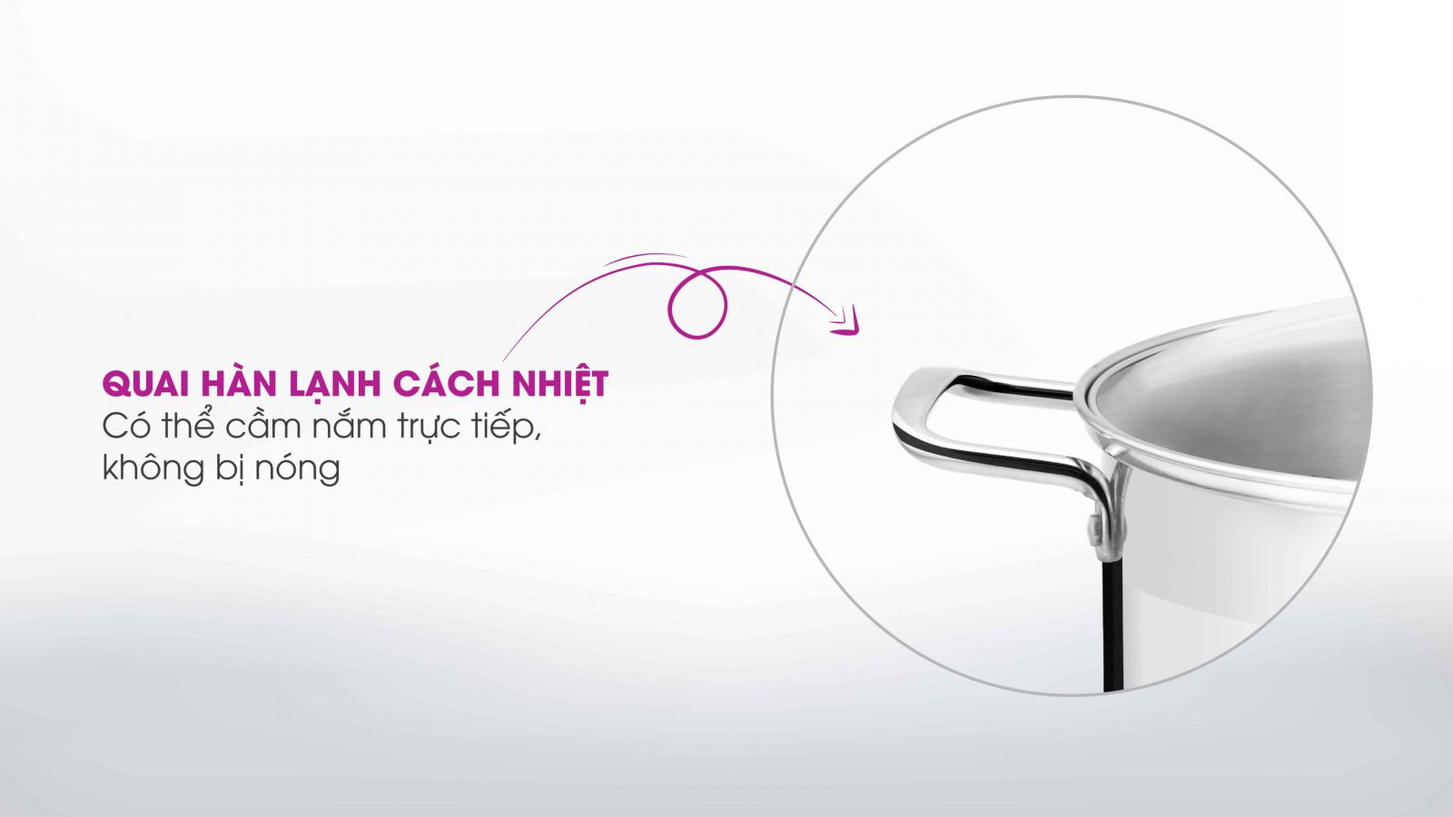 Quai hàn lạnh: Tay cầm nồi chảo cách nhiệt, hạn chế bị nóng lên gây mất an toàn cho người sử dụng. Quai nồi chắc chắn, chịu trọng lượng lớn giúp bạn dễ dàng di chuyển nồi mà không sợ rơi, đổ trong quá trình nấu nướng.