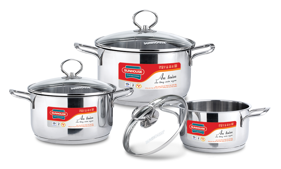 Bộ nồi inox Sunhouse 5 đáy bộ 3 SH888