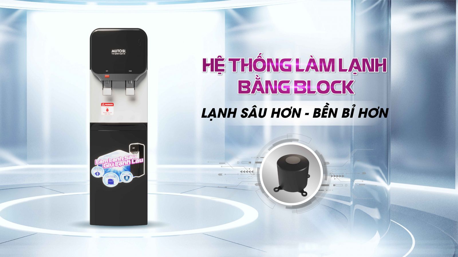 Công nghệ Block làm lạnh sâu tới 5°C, khả năng làm nóng tới 94°C, giúp cho nhu cầu sử dụng nước nóng lạnh được đáp ứng liên tục, thuận tiện trong các công việc nội trợ hàng ngày.