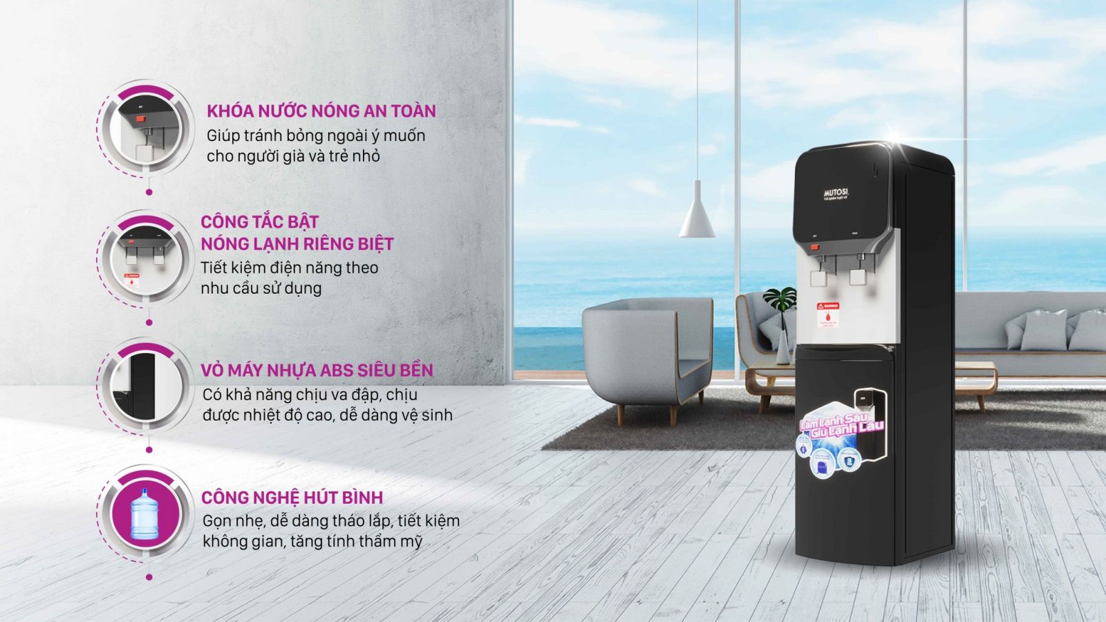 Cây nước nóng lạnh Mutosi MD-250BK phù hợp với nhiều không gian