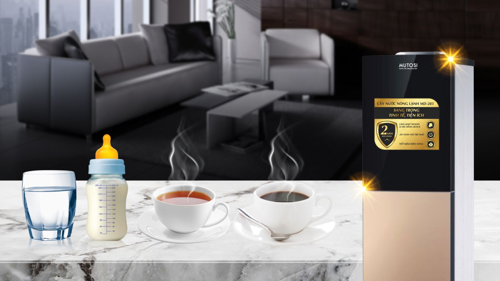 Được sản xuất trên dây chuyền công nghệ hiện đại, sử dụng chất liệu và hệ thống làm lạnh cao cấp, cây nước nóng lạnh Mutosi tuyệt đối an toàn với người tiêu dùng.