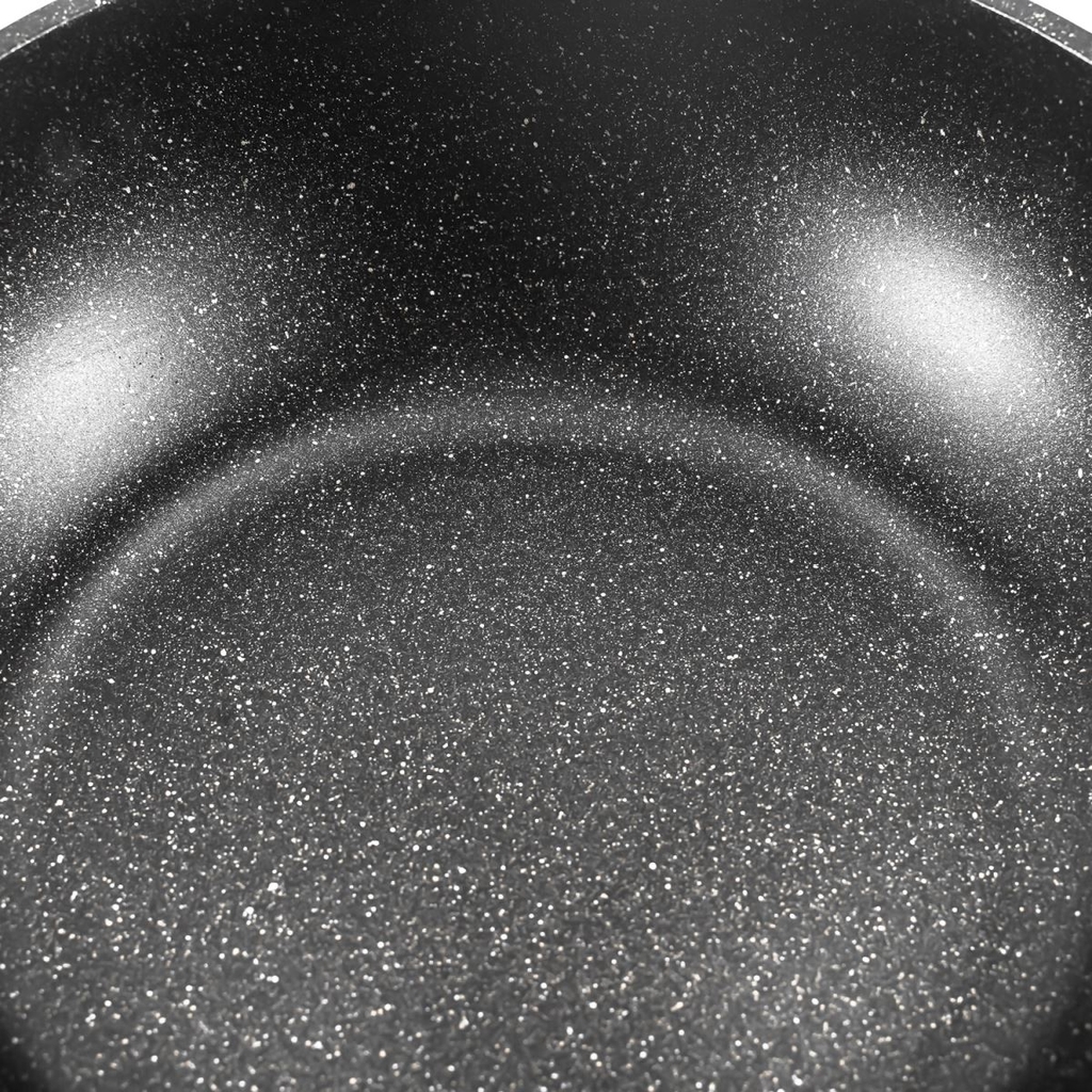 Chảo chống dính Goldsun FP-GD1030-IH(B) làm từ chất liệu nhôm đúc, mặt vân đá độ bền cao. Nhôm đúc dẫn nhiệt nhanh giúp người dùng nấu ăn nhanh chóng và tiết kiệm nhiên liệu.