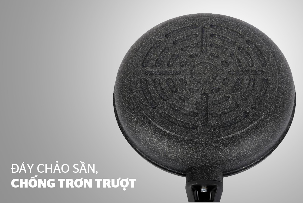 - Đáy chảo chống trượt: Đáy chảo được thiết kế các đường vân đồng tâm sâu, chống trượt tốt, an toàn khi sử dụng.