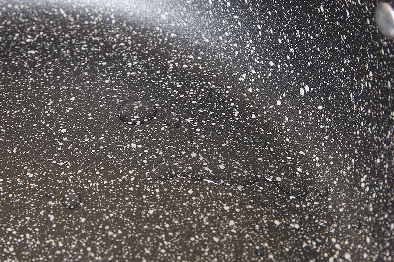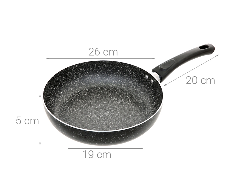 Chảo chống dính bằng hợp kim nhôm, bề mặt là lớp chống dính vân đá phủ sơn Whitford Xylan chịu mức nhiệt tối đa 380°C