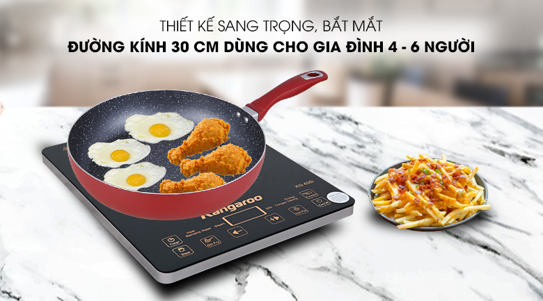 Với đường kính 30 cm cho phép nấu các món chiên xào cho gia đình lớn 4 - 6 người.
