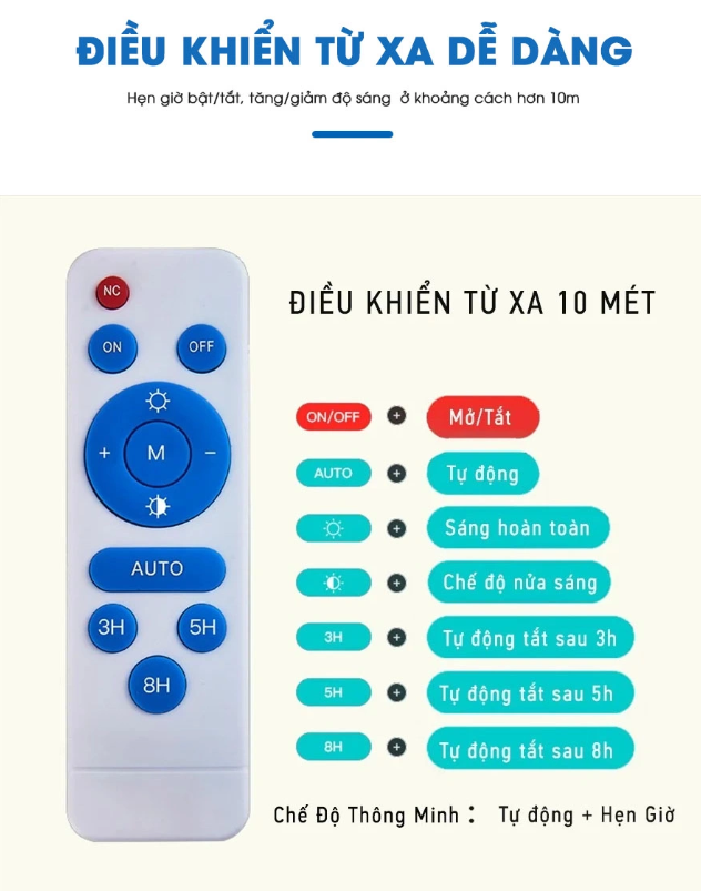 ✅ Công tắc: BẬT / TẮT / Tự động, điều khiển từ xa