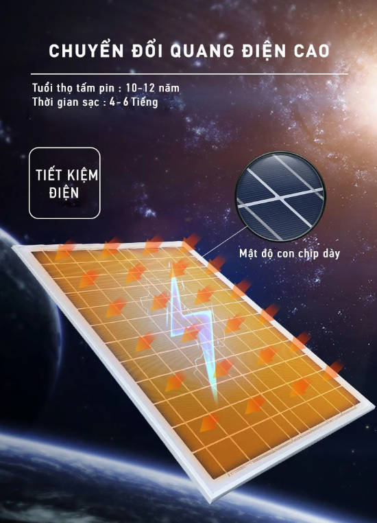3. Tự động bật/tắt khi trời tối: Chế độ đèn tự động bật sáng khi trời tối và tự động tắt khi trời sáng. Không phụ thuộc vào điện - Cúp điện đột xuất - Vẫn không lo trời tối - Đảm bảo an toàn cho gia đình bạn.