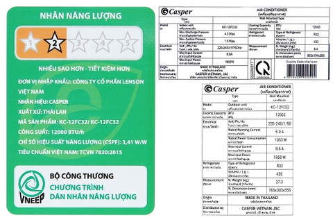 Lưu ý: Từ ngày 01/01/2023 khi mua sản phẩm máy lạnh Casper 1.5 HP KC-12FC32 sẽ được bảo hành máy nén 12 năm. Áp dụng cho tất cả quý khách hàng mua, sử dụng sản phẩm trên toàn quốc và đã thực hiện đăng ký bảo hành thành công từ ngày 01/01/2023.