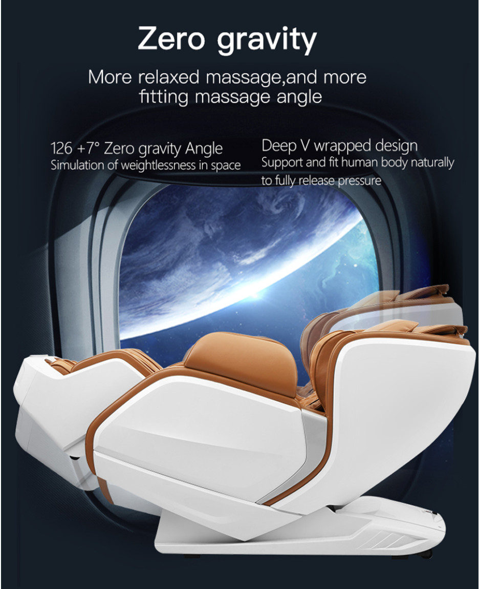 Chế độ massage không trọng lực làm cơ thể cảm giác được thư giãn hoàn toàn, cơ thể được ghế massage điều chỉnh ở trạng thái nằm ngang, trọng lượng toàn thân được trải đều, nâng đỡ cảm giác bay bổng giữa không trung. Phần cột sống lưng được giảm tối đa áp lực, cơ thể cảm giác được thư giãn sâu, góp phần tăng hiệu quả massage, hỗ trợ trị liệu sức khoẻ toàn thân tốt nhất.