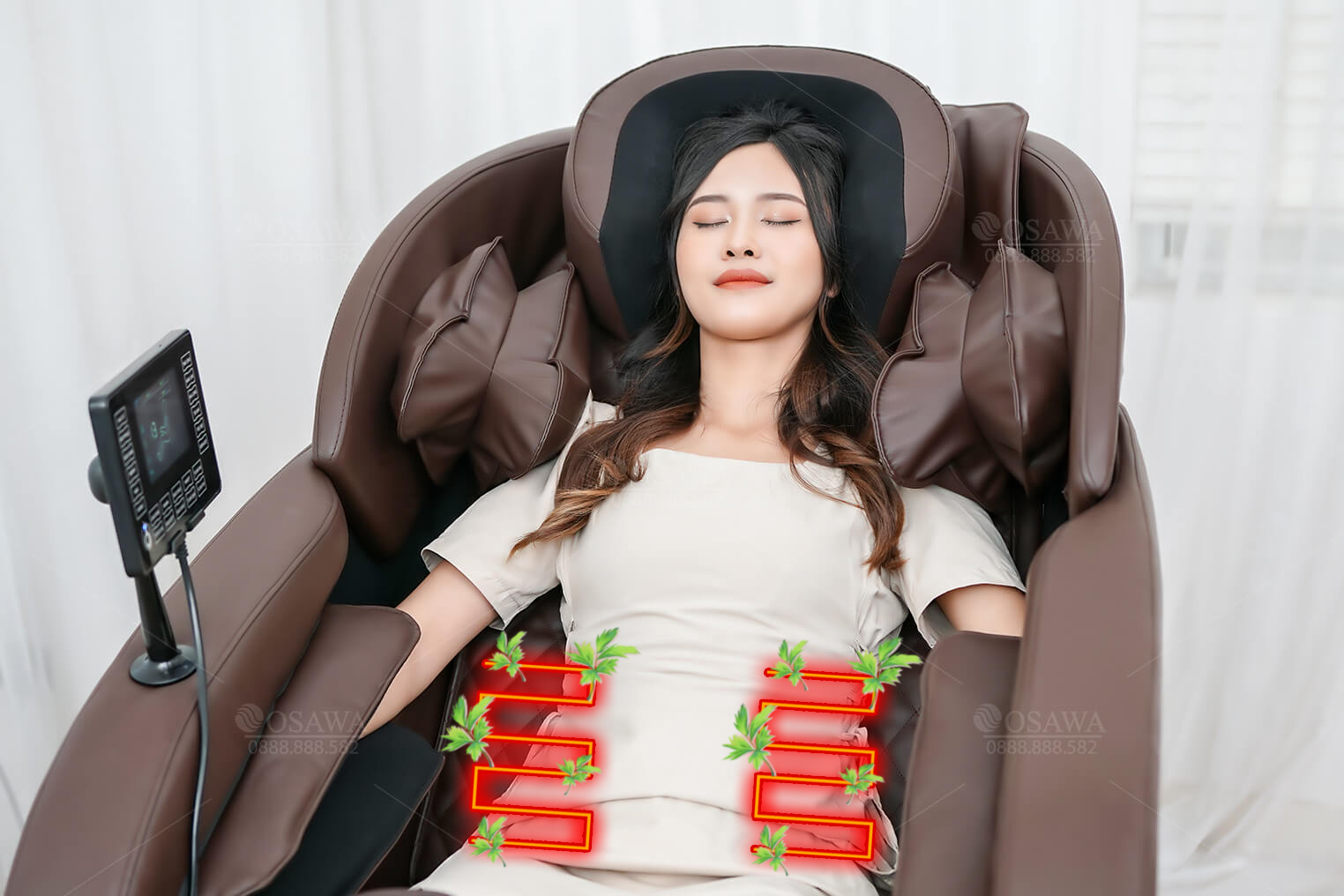 Ghế massage Osawa OS – 200 Plus được trang bị hệ thống nhiệt hồng ngoại ở vùng lưng eo và vùng bụng chân. Công dụng của nhiệt hồng ngoại. Đó chính là làm lưu thông tuần hoàn máu lưu thông khí huyết. Tăng cường hệ miễm dịch của cơ thể.