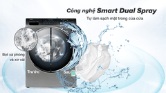 Ở công nghệ Smart Dual Spray, máy giặt sẽ tự động phun ra các tia nước mạnh giúp rửa sạch mặt bên trong cửa, loại bỏ hoàn toàn bọt xà phòng và xơ vải còn sót lại sau khi giặt, giúp bạn tiết kiệm thời gian vệ sinh máy cũng như nâng cao tuổi thọ của sản phẩm, đảm bảo quần áo được giặt sạch trong những lần giặt kế tiếp.