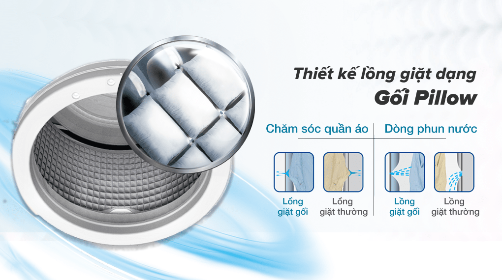 Giặt sạch, bảo vệ tối ưu quần áo, hạn chế hư tổn nhờ lồng giặt Pillow