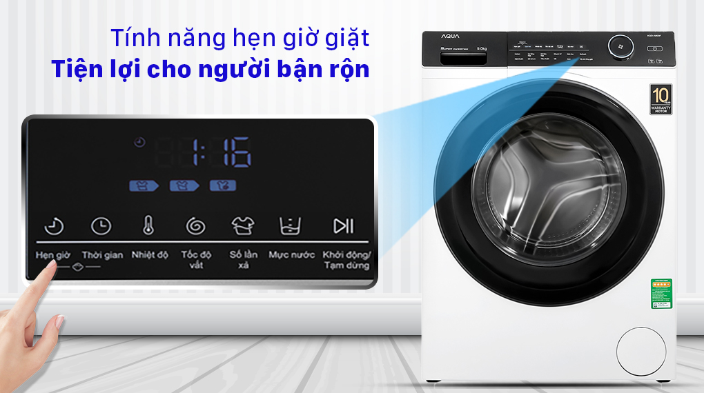 Tính năng hẹn giờ giặt xong giúp bạn có thể cài đặt thời gian cho máy tự động vận hành sao cho phù hợp với nhu cầu sử dụng, hạn chế việc quần áo giặt xong để lâu trong máy giặt dẫn đến có mùi hôi.