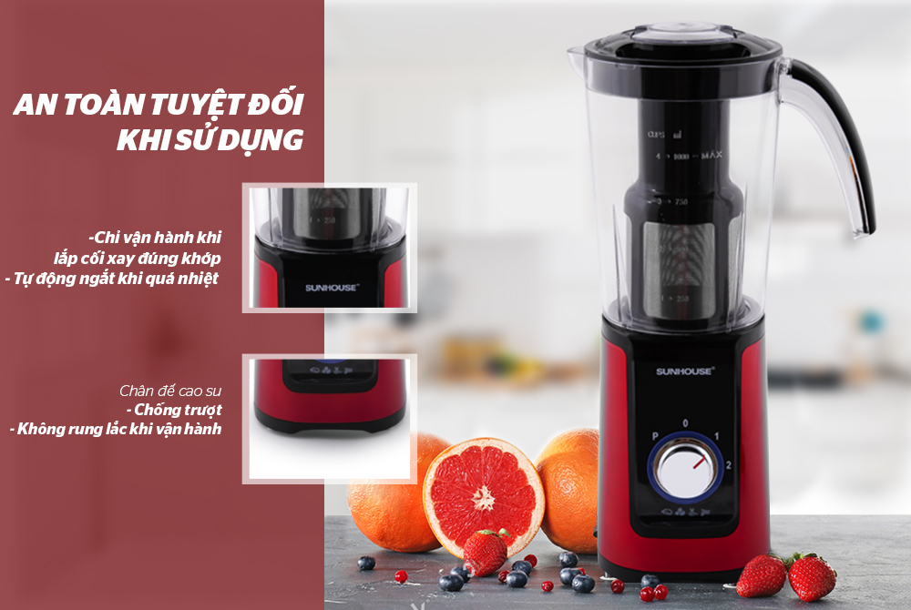 Máy xay sinh tố đa năng SUNHOUSE SHD5322R được làm từ những chất liệu an toàn, không gây hại (inox cao cấp, nhựa PC siêu bền), giúp bạn hoàn toàn yên tâm khi sử dụng.