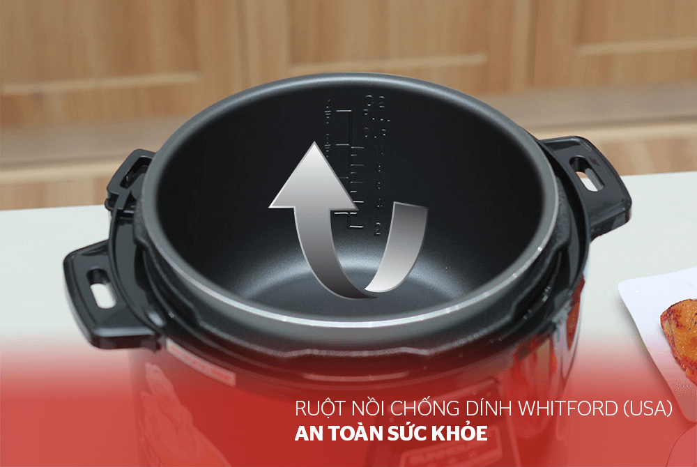 - Lòng nồi phủ 3 lớp chống dính Whitford – USA siêu bền, an toàn cho sức khỏe