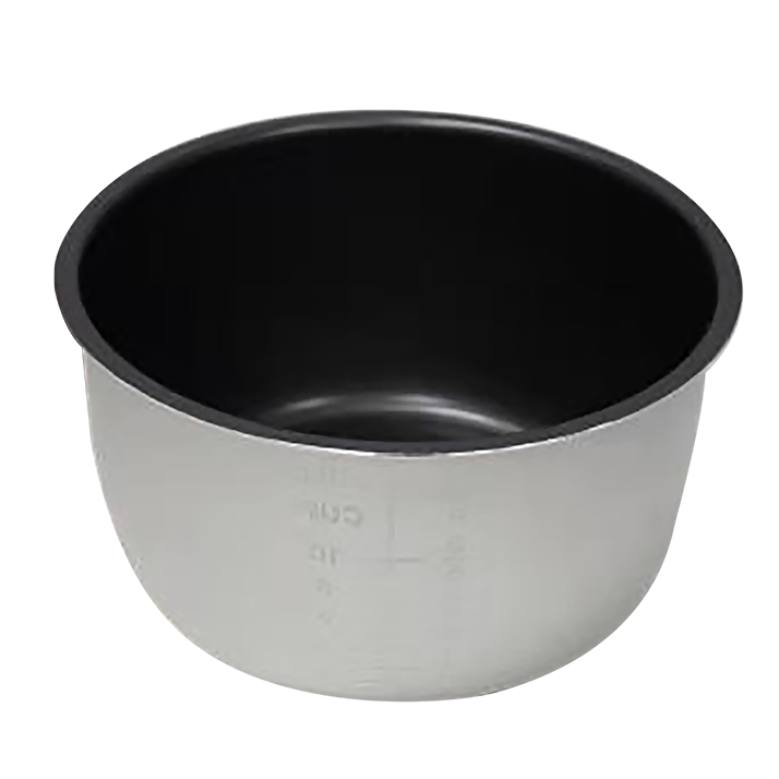 - Lòng nồi nhôm phủ chống dính an toàn, hiệu quả. Nhờ đó, thực phẩm được ninh đều, chín nhanh hơn và cũng mềm thơm hơn; đối với cơm thì hạt chín đều, không lo cơm sống ở bề mặt còn đáy nồi thì cháy khét.