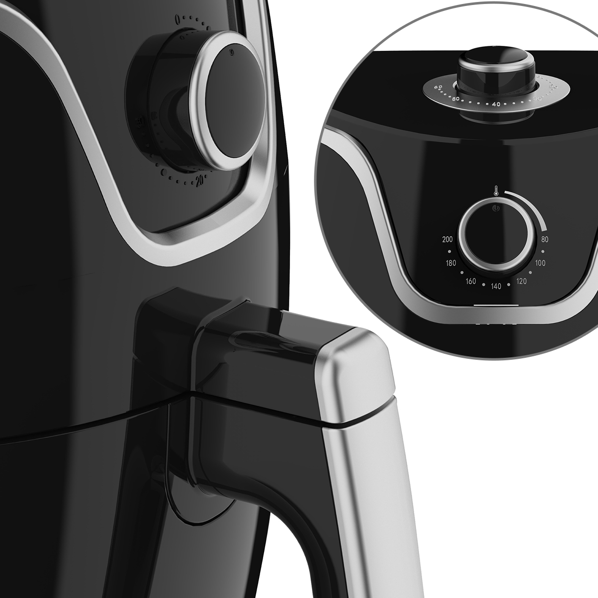 Bạn có thể dễ dàng chế biến được các món ăn đầy đủ dinh dưỡng cho gia đình: món chiên, nướng, quay…. mà không cần dầu mỡ. Bạn chỉ cần quét một lượng dầu nhỏ lên thực phẩm và lựa chọn nhiệt độ, ấn hẹn giờ (1-60 phút). Nồi chiên sẽ đem đến món nướng thơm ngon cho cả gia đình giúp tiết kiệm thời gian và công sức.