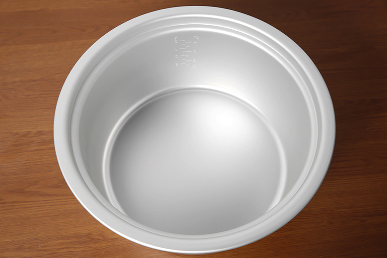 - Lòng nồi bằng nhôm không chống dính, gia nhiệt tốt, nấu cơm chín nhanh.