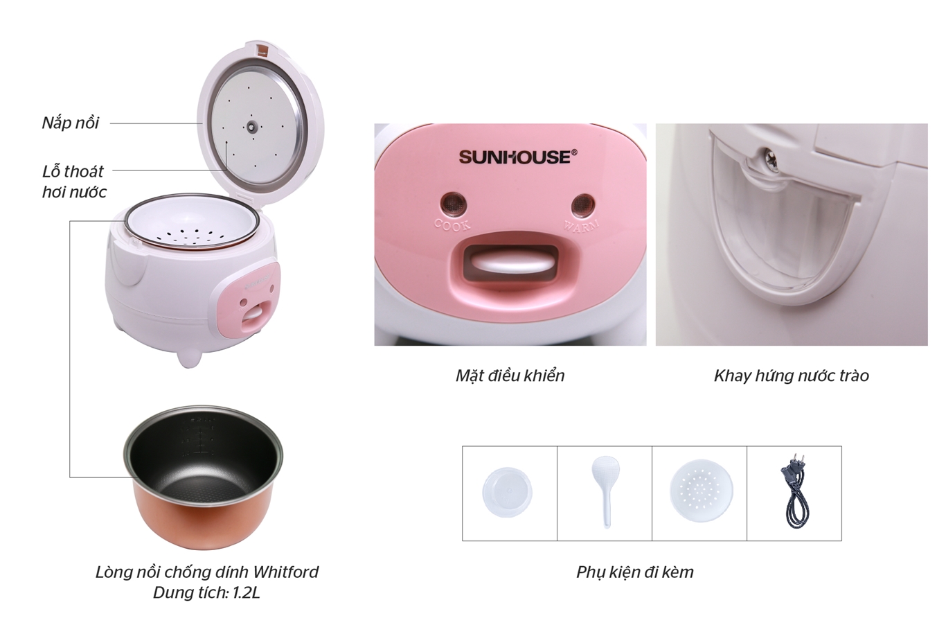 Nồi cơm điện Sunhouse nấu cơm chín mềm, ngon