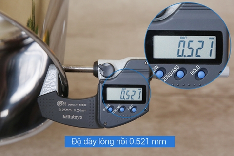 Nồi dày 0.521 mm, bền chắc, giữ nhiệt tốt, truyền nhiệt đều giúp nấu ăn nhanh chóng, tiết kiệm thời gian