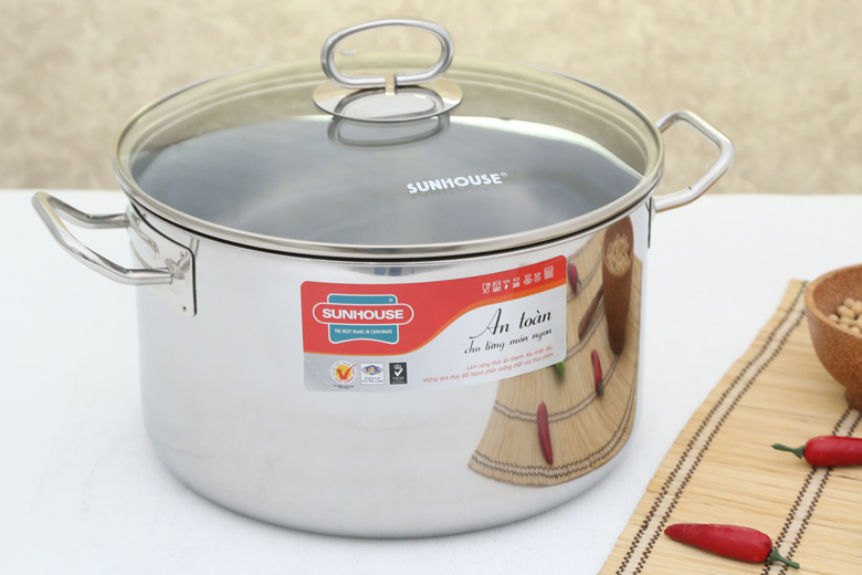 Nồi inox Sunhouse SHG26S thương hiệu Sunhouse – Việt Nam, sản xuất tại Việt Nam, kiểu dáng sang trọng.