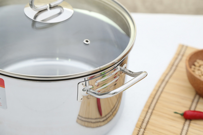 Tay cầm bằng inox tinh tế gắn chắc chắn vào thân nồi, nhược điểm không cách nhiệt nên cần dùng găng tay khi nấu nướng.