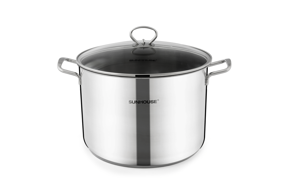 Nồi lẩu inox 1 đáy SUNHOUSE SH28LG có vung kính cường lực, dày 4mm, trong suốt, giúp bạn dễ dàng quan sát thực phẩm bên trong nồi.