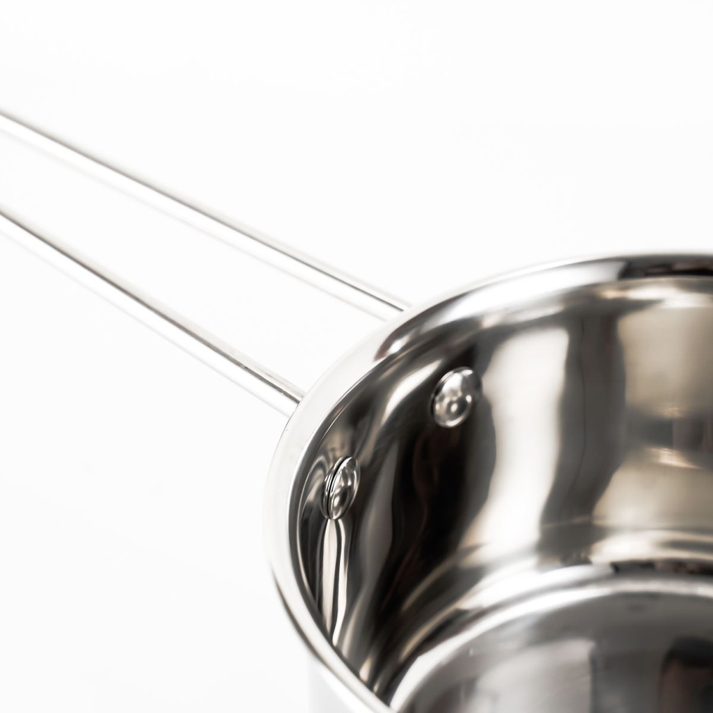Quánh inox Goldsun GE16-1302SG có cấu tạo 3 lớp đáy dày và chắc chắn, giúp truyền nhiệt nhanh, tỏa nhiệt đều. Nhờ đó, nhanh chóng chín thức ăn đồng thời tiết kiệm được nhiên liệu và thời gian nấu nướng. Thật tiện lợi khi bạn có ít thời gian vào bếp phải không?