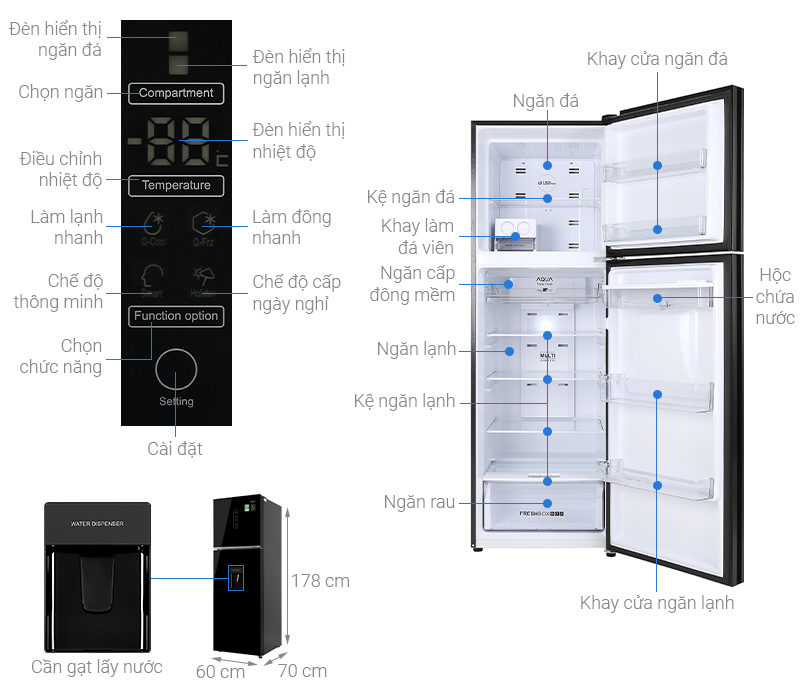 Chiếc tủ lạnh Aqua Inverter này còn được thiết kế thêm ngăn đa chức năng Triple fresh, có thể điều chỉnh 3 mức nhiệt độ cho phù hợp với nhu cầu bảo quản của bạn bao gồm: Đông mềm - 3 độ C, Trữ lạnh thịt cá trong ngày -1 độ C và Làm lạnh nhanh đồ uống 3 độ C
