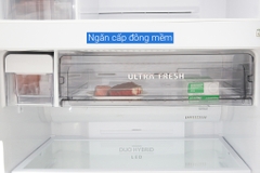Tủ lạnh Toshiba Inverter GR-AG58VA XK được trang bị ngăn cấp đông mềm ULTRA FRESH -3 độ C, giúp cho việc bảo quản thực phẩm sống (thịt, cá,…) không bị đông quá cứng, tiết kiệm thời gian chế biến cho những ai bận rộn.